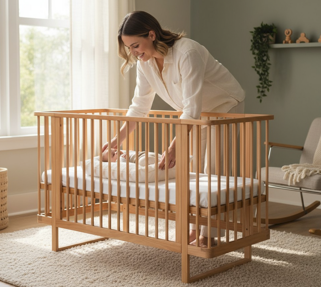 • 3-in-1 convertible design: bassinet height, cot height, and toddler bed by removing one side